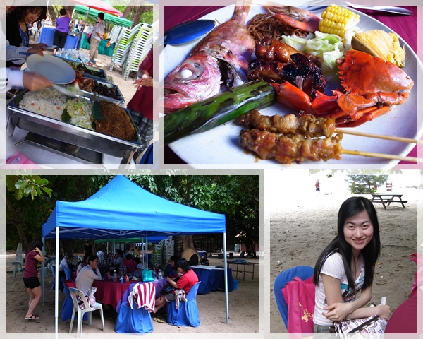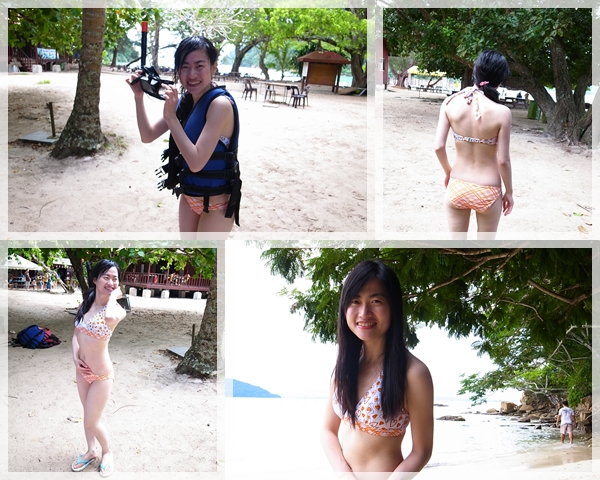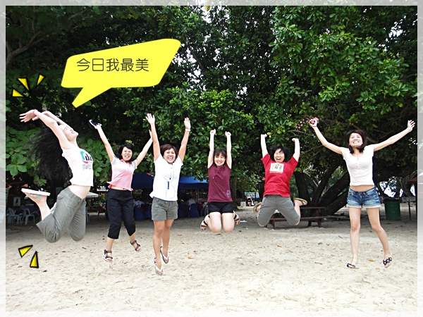 消化差不多之後,我又下海了。一直浮到我覺得沒什麼體力後才上岸,這時也下起了小雨了,但這一切值得了,不枉我走這一遭了。大家覺得我很猛,居然可以呆在水裡那麼久。不太會游泳,卻也很大膽地游到最邊邊了。我想不管內在外在,本日的最佳女主角我已當之無愧(戴上皇冠揮手)。要去把泳裝換下時,同事堅持要幫我留下倩影,就應觀眾要求勉強照了幾張(撥瀏海)(瀏海太濕還卡住)。