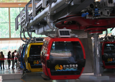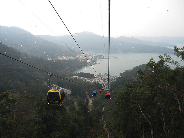 一球一球的日月潭纜車真可愛。我覺得日月潭纜車速度很快,好像在趕通勤時間,比九族境內的空車纜車還快。日月潭纜車的高度又更高了,害我更癢了。
