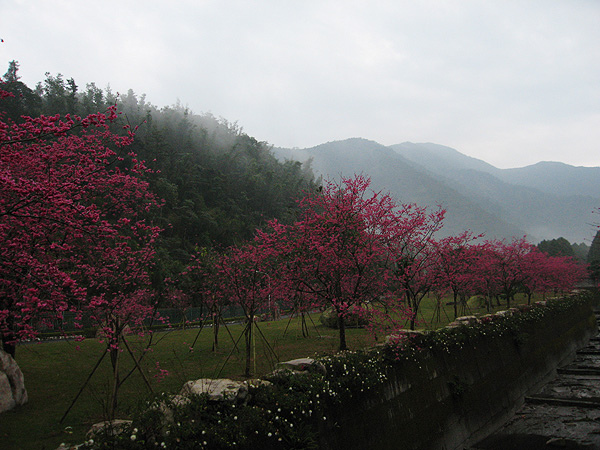 走出觀山樓,就可以看到好多的櫻花,雖然陰陰的,但別有一番風味。好像在日本啊!(其實根本沒去過日本)