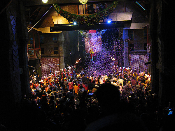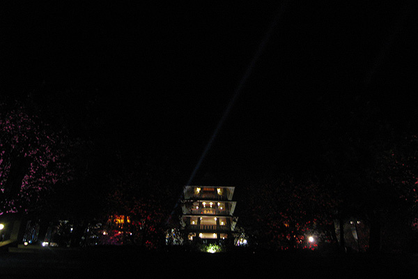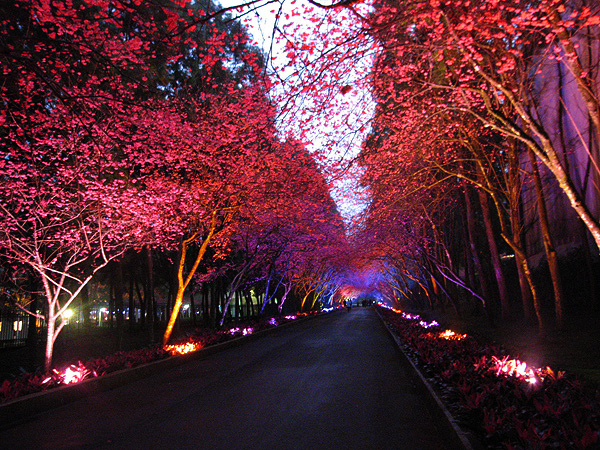 我們就這樣走下來,終於把夜櫻8景看完了,最後還趕上了在文化廣場的櫻花季特別演出,感覺跟下午表演的好像差不多,只是表演的原民人數更多。結束時,他們從上面灑下粉紅色的紙片,遠遠看以為是櫻花花瓣,煞是迷人。
