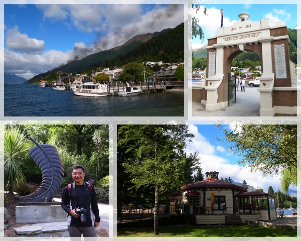 (左下- 進入皇后鎮花園,阿腫好呆。)