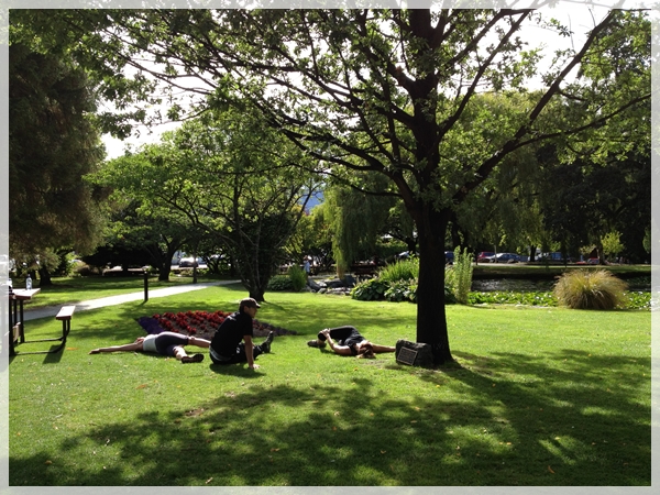 我們在湖邊散步後本想去商店街上晃晃,但大多數的店家都還沒開,於是我們繞到座落在湖另一邊的皇后鎮花園。