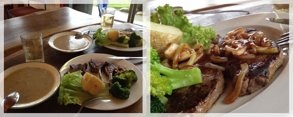 (左- 我的羊排。右- 阿腫的牛排。)(還放了假裝是白酒的汽水)